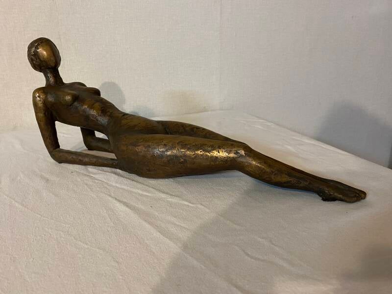 Bronzen beeld van liggende dame